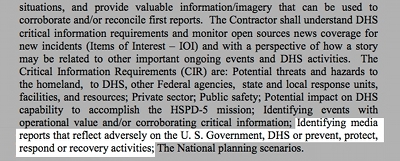 The DHS instructed the social media monitoring company to generate "reports on DHS, Components, and other Federal Agencies: positive and negative reports on FEMA, CIA, CBP, ICE, etc. as well as organizations outside the DHS."